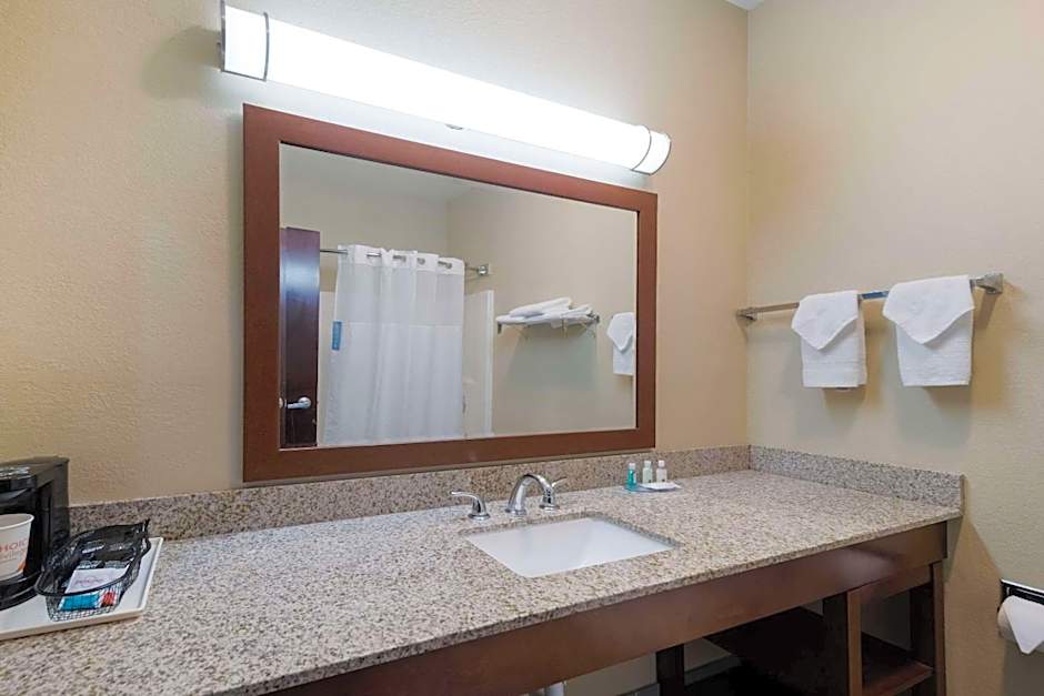 A seating area with a sofa and a flat-screen TV are featured in this suite. A microwave, a refrigerator and coffee service are provided.